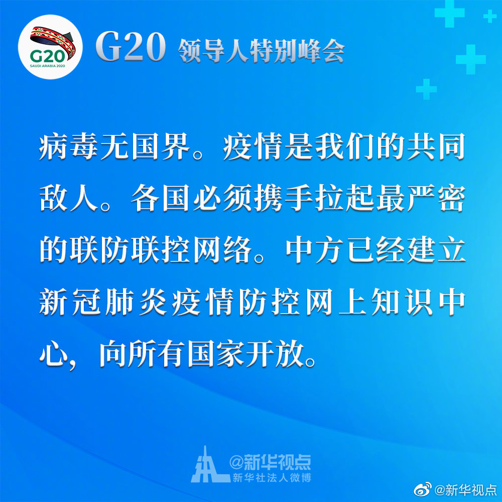 習(xí)近平在二十國集團領(lǐng)導(dǎo)人應(yīng)對新冠肺炎特別峰會上重要講話金句