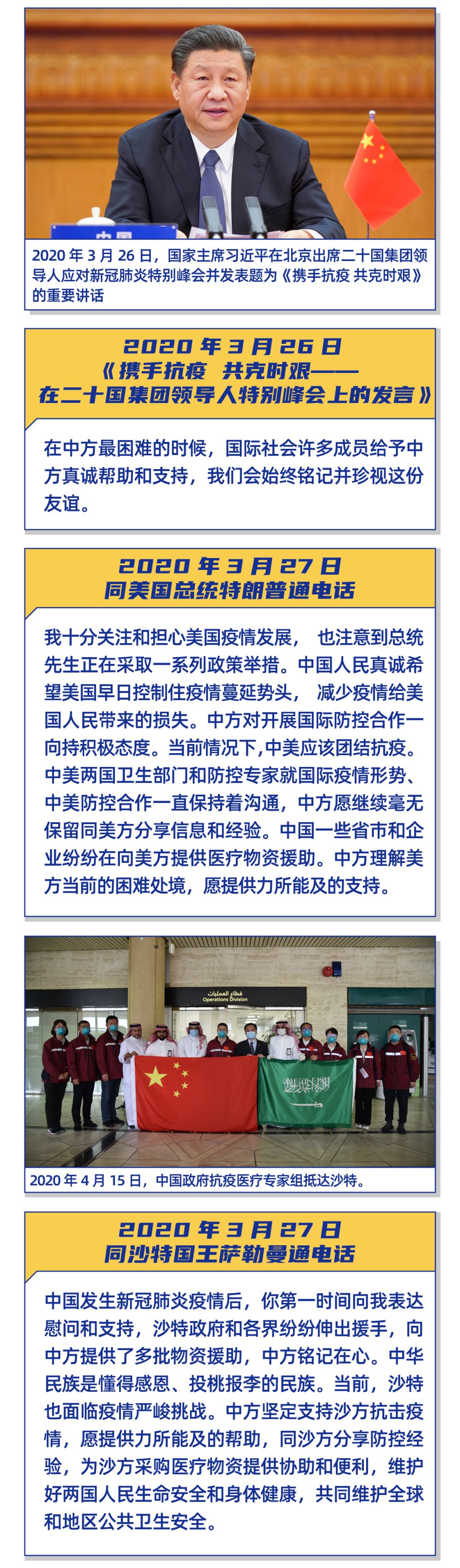 4月16日出版的第8期《求是》雜志發(fā)表中共中央總書記、國家主席、中央軍委主席習(xí)近平的重要文章《團(tuán)結(jié)合作是國際社會(huì)戰(zhàn)勝疫情最有力武器》。文章第三專題著重強(qiáng)調(diào):患難見真情,中方贊賞國際社會(huì)給予我們的寶貴理解和支持,中國人民銘記在心,中華民族是懂得感恩、投桃報(bào)李的民族,中方始終在力所能及范圍內(nèi)為國際社會(huì)抗擊疫情提供支持。