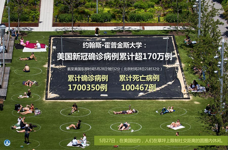 新華社紐約5月28日電 美國約翰斯·霍普金斯大學(xué)28日發(fā)布的新冠疫情最新統(tǒng)計(jì)數(shù)據(jù)顯示,截至美國東部時間28日9時32分(北京時間28日21時32分),美國累計(jì)確診病例達(dá)1700350例,累計(jì)死亡病例達(dá)100467例。