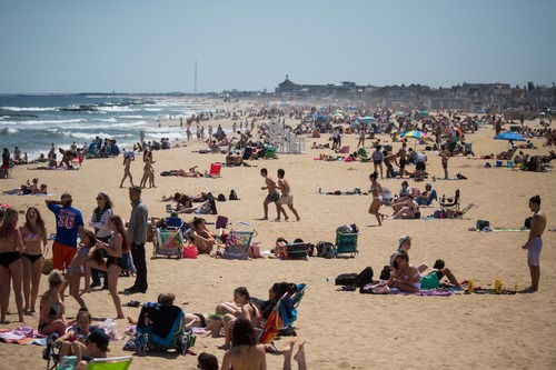 5月16日,人們在美國新澤西州貝爾馬海灘。新華社發(fā)(郭克攝)
