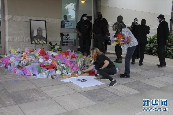 6月9日,在美國得克薩斯州休斯敦,人們在舉行弗洛伊德葬禮的教堂外獻花。因警察暴力執(zhí)法而死亡的非裔美國人弗洛伊德的葬禮9日在其“家鄉(xiāng)”——休斯敦市的一座教堂舉行。葬禮結(jié)束后,弗洛伊德的遺體被運往休斯敦一處墓地安葬。新華社發(fā)(勞承躍攝)