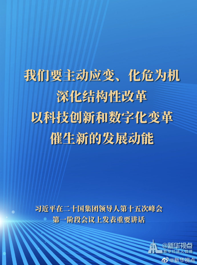 11月21日,國(guó)家主席習(xí)近平在二十國(guó)集團(tuán)領(lǐng)導(dǎo)人第十五次峰會(huì)第一階段會(huì)議上發(fā)表重要講話。一起來(lái)看習(xí)主席的G20金句。