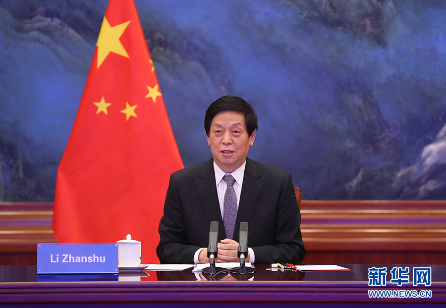 11月23日,全國人大常委會(huì)委員長栗戰(zhàn)書在北京以視頻方式同老撾國會(huì)主席巴妮舉行會(huì)談。新華社記者 姚大偉 攝