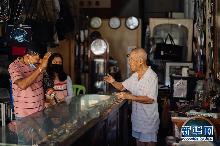 12月5日,在馬來西亞雪蘭莪州巴生的郁昌表行,韋華與顧客告別。新華社記者 朱煒 攝