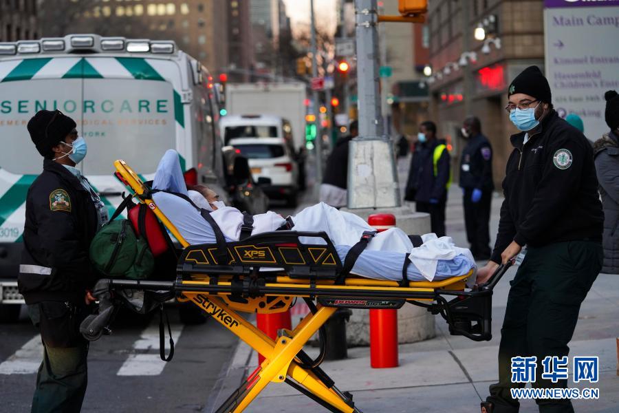 12月8日,醫(yī)護人員在美國紐約一家醫(yī)院外運送病人。美國約翰斯·霍普金斯大學8日發(fā)布的新冠疫情最新統(tǒng)計數(shù)據(jù)顯示,美國累計確診病例超過1500萬例。新華社記者 王迎 攝
