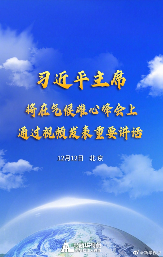 新華社北京12月11日電 外交部發(fā)言人華春瑩11日宣布:應聯(lián)合國秘書長古特雷斯、法國總統(tǒng)馬克龍、英國首相約翰遜、智利總統(tǒng)皮涅拉、意大利總理孔特聯(lián)名邀請,國家主席習近平將于12月12日出席氣候雄心峰會并發(fā)表重要講話。會議將以視頻方式舉行。