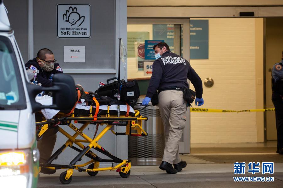12月14日,在美國(guó)紐約,工作人員將一名患者送入醫(yī)院。新華社發(fā)(郭克 攝)