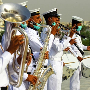 3月23日,樂手在位于巴基斯坦卡拉奇的國父真納墓參加“巴基斯坦日”紀念活動。