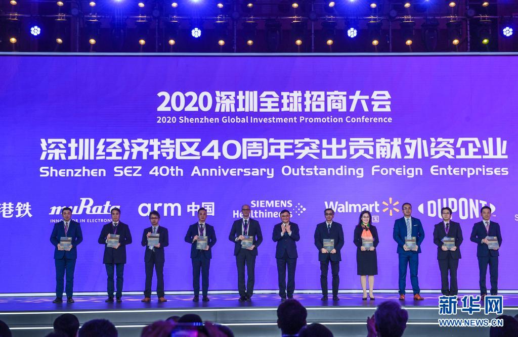 這是深圳經(jīng)濟(jì)特區(qū)40周年突出貢獻(xiàn)外資企業(yè)頒獎儀式(2020年12月8日攝)。新華社記者 毛思倩 攝