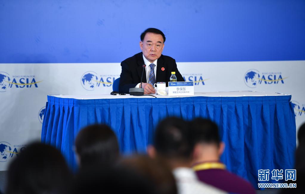 4月21日,博鰲亞洲論壇秘書長李保東在年會(huì)閉幕新聞發(fā)布會(huì)上講話。新華社記者 郭程 攝