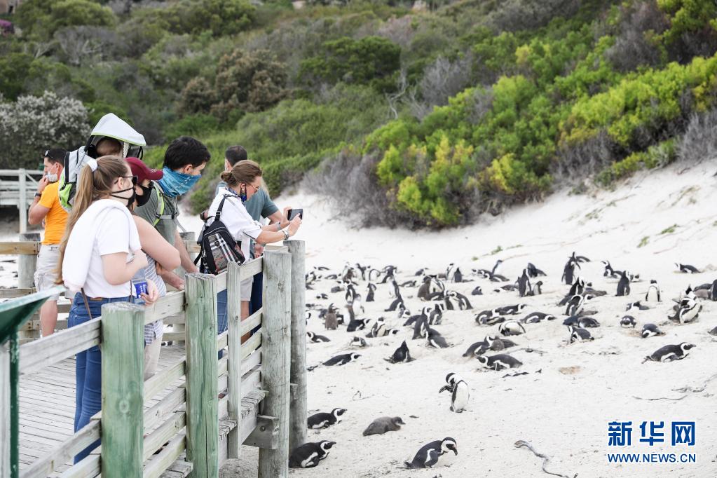 4月25日,游客在南非西蒙鎮(zhèn)企鵝灘觀賞非洲企鵝。