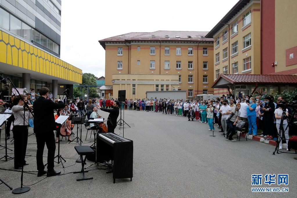當(dāng)日,羅馬尼亞首都布加勒斯特一個(gè)樂隊(duì)在該國一家傳染病醫(yī)院——馬太·巴爾什醫(yī)院演出,向抗擊新冠疫情的醫(yī)務(wù)工作者致謝。