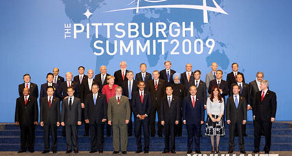 2009年9月,二十國(guó)集團(tuán)第三次峰會(huì)在美國(guó)匹茲堡舉行。會(huì)議在國(guó)際金融機(jī)構(gòu)改革治理結(jié)構(gòu)方面取得重大突破。與會(huì)領(lǐng)導(dǎo)人同意將國(guó)際貨幣基金組織和世行兩大機(jī)構(gòu)的份額向發(fā)展中國(guó)家分別轉(zhuǎn)移5%和3%,以提高發(fā)展中國(guó)家的代表性和發(fā)言權(quán)。