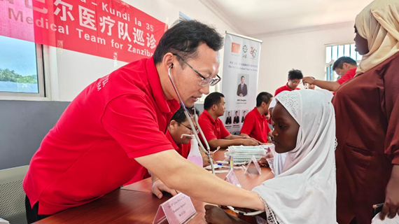 中國援桑給巴爾醫(yī)療隊在當(dāng)?shù)毓聝涸洪_展義診活動